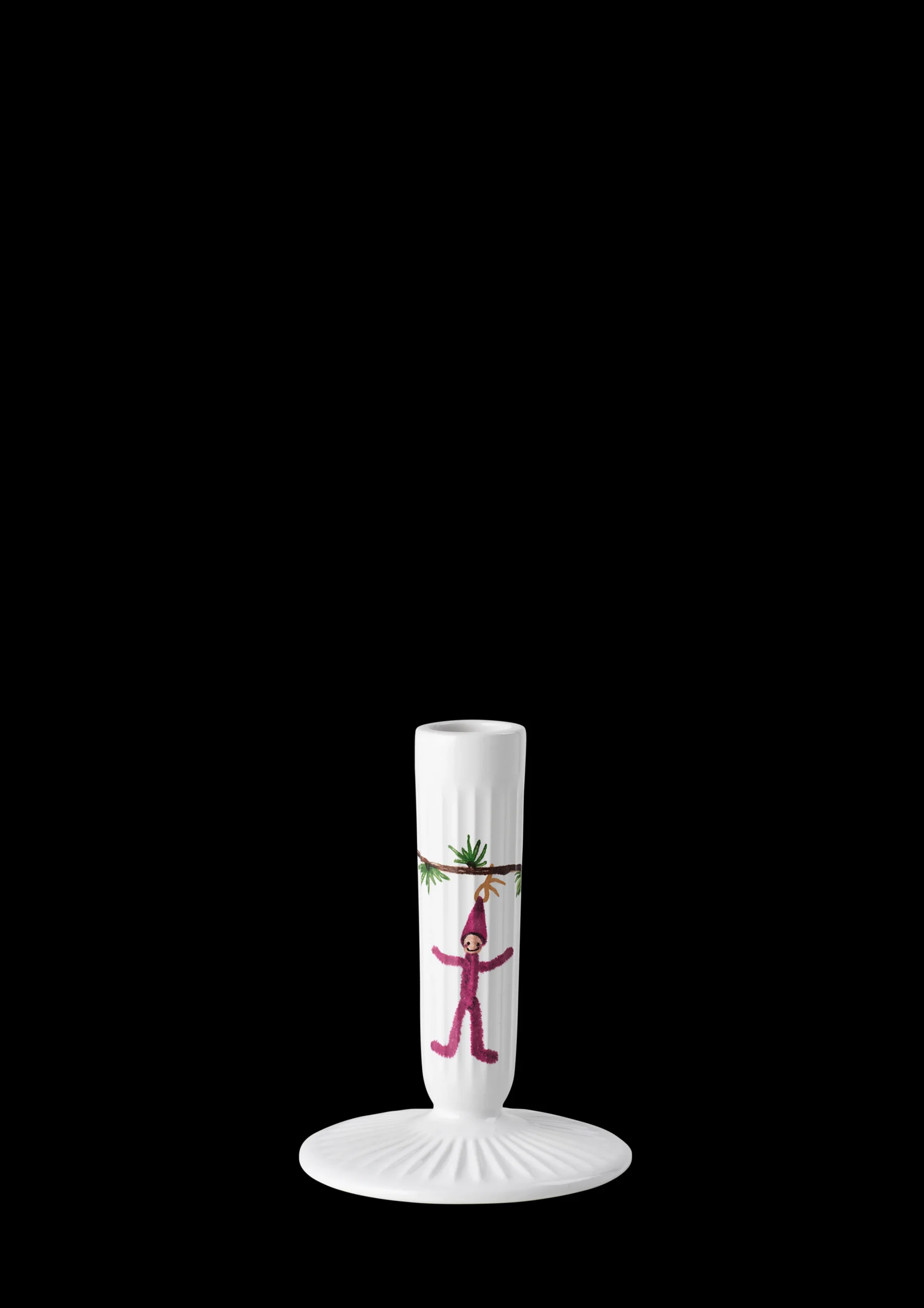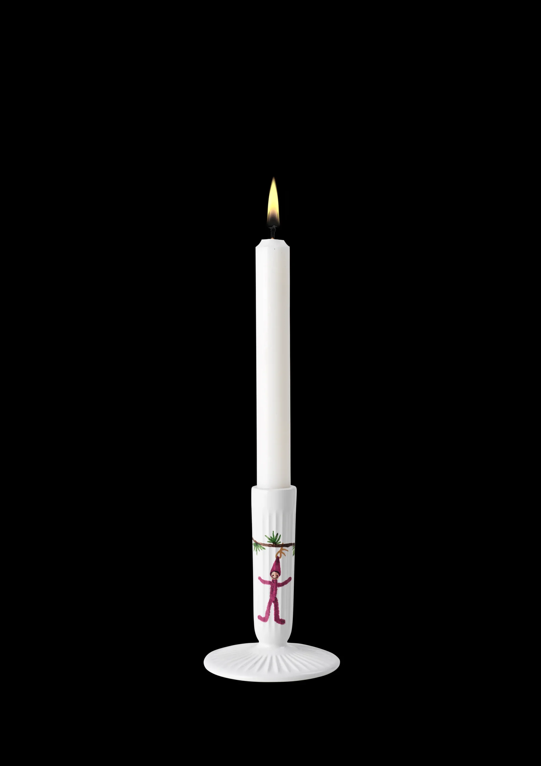 Lysestagen fra Hammershøi Jul har en slank silhuet, som skaber et harmonisk udtryk i et dekorativt stilleben i vinduet. Med sine karakteristiske Hammershøi-riller med juledekorationer matcher lysestagerne resten af Hammershøi Jul serien. Stagerne er dekoreret med nostalgiske jule-elementer, den grønne lærkegren skaber en kontinuitet i designet. Motiverne er tegnet med en moderne streg og en farveskala, som bringer minderne om jul i gamle dage frem.Designet af Hans-Christian Bauer og Rikke Jacobsen