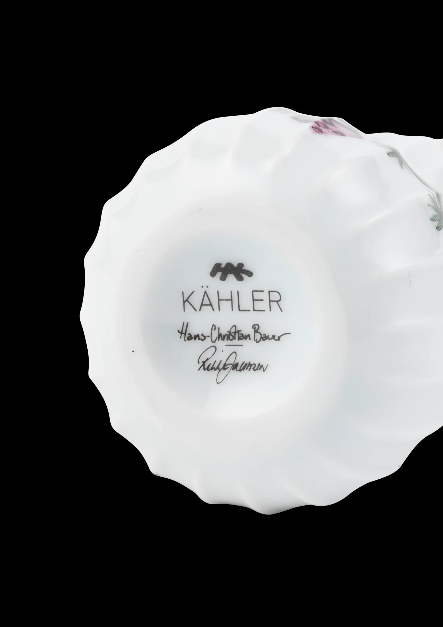 Juletraditioner og håndværkstraditioner i skøn forening. Med familien af snemænd fra Kählers juleserie Hammershøi Christmas bringer du enkelt og autentisk julestemningen ind i boligen med glade smil og hyggelige julemotiver, der matcher seriens øvrige dele og fuldender julehyggen, samtidig med at du kan nyde nostalgien i Kählers håndlavede designtraditioner. Gå en tur i haven, parken eller skoven og find jeres egne små kviste, der kan bruges som arme til seriens søde figurer. Måske som en ny, hyggelig juletradition den 1. december. På den måde bliver snemændene endnu mere personlige og betydningsfulde. Vær opmærksom på at de medfølgende arme til både den stående og hængende familie af snemænd udelukkende er vedlagt som inspiration til, hvordan du kan personliggøre dine Kähler-snemænd i din helt egen DIY-stil. Snemanden har selvfølgelig en høj hat på, som vi forbinder det med den klassiske snemand. Han måler 11,5 cm i højden og 5 cm i diameter og er udformet i bløde linjer med Hammershøi-seriens ikoniske riller, der kendetegner Hans-Christian Bauers stel og bordpynt. Denne model er den stående udgave af Snemanden, men du kan også få ham som ophæng. Så der er frit valg. Skab dit eget snelandskab i vinduet, på hylden eller på julebordet, eller lad hele familien pynte på juletræet eller på smukke grene i en flot vase. Kählers snemandsfamilie består af Snemanden, Snekonen, Snedrengen og Snepigen, der alle på forskellig vis er dekoreret med motiver fra Hammershøi Christmas-serien malet i akvarel af Rikke Jacobsen og overført til det snehvide porcelæn. Motiverne er klassiske julemotiver som julehjerter, kræmmerhuse og gaver i en autentisk, hyggelig og håndmalet stil, som man slet ikke kan undgå at komme i den helt rigtige julestemning af.