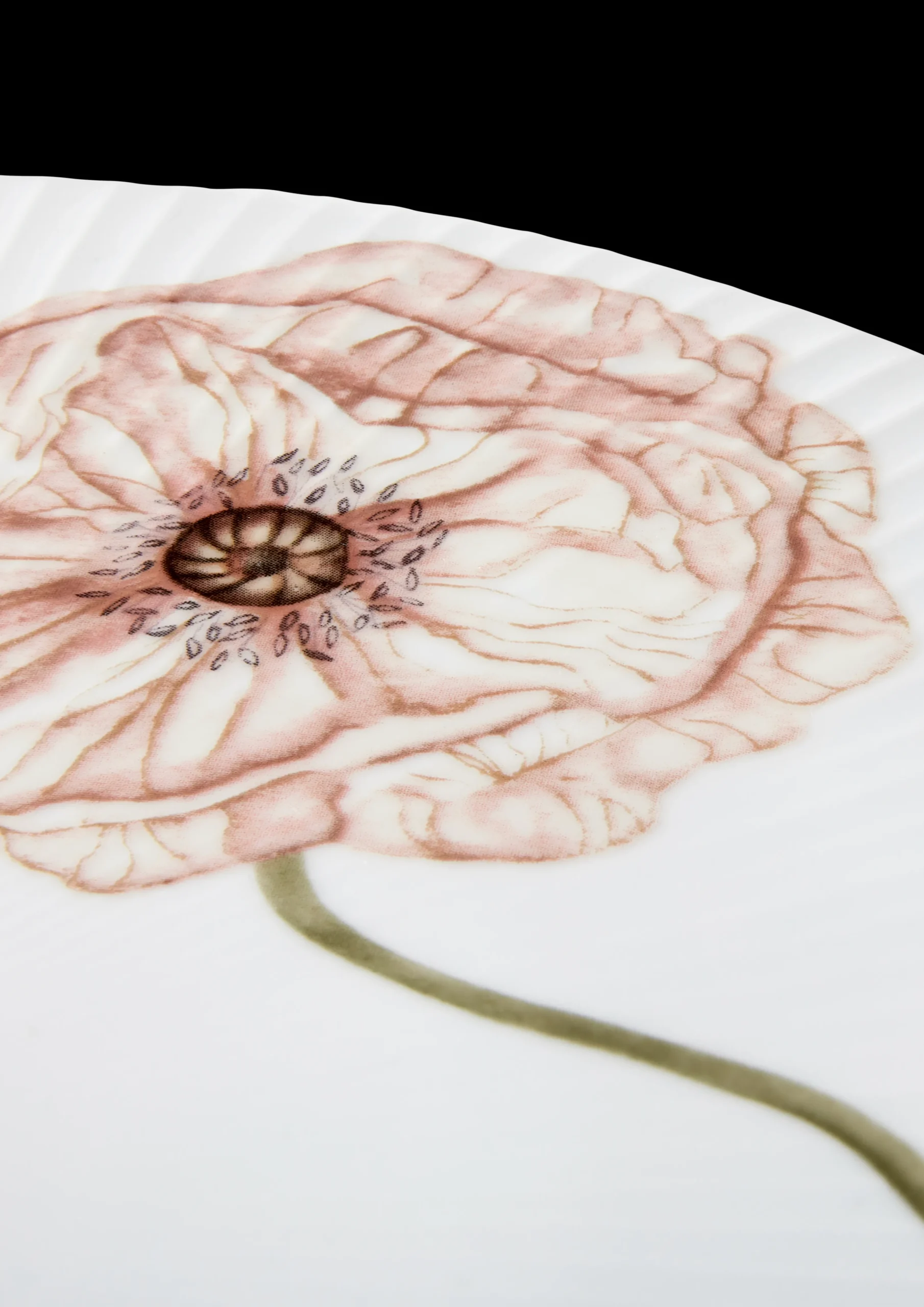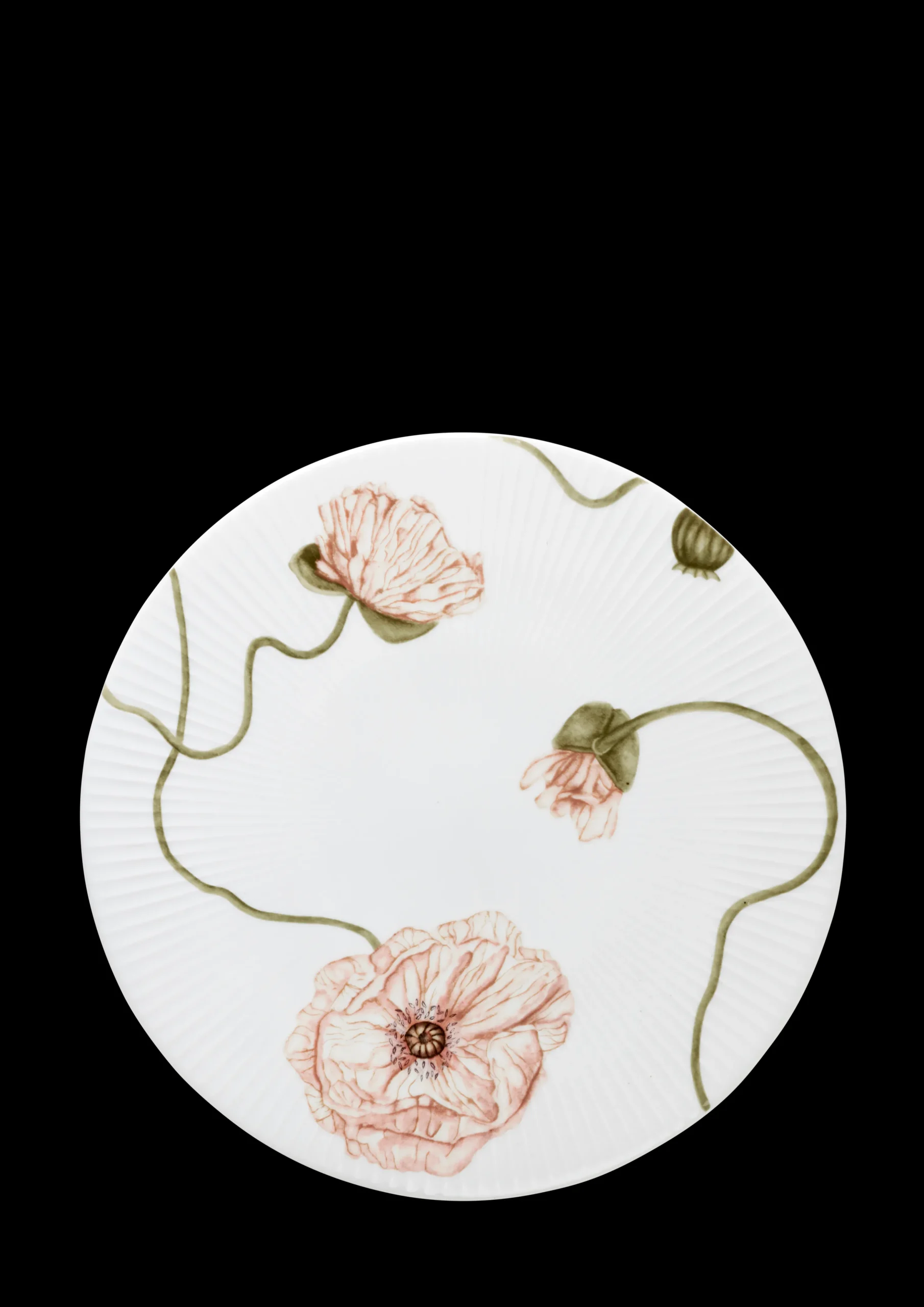 Skab en elegant og gennemført kageservering med yndefulde valmuer i blød bevægelse og stilke, der snor sig langs porcelænets former og nysgerrigt dukker op, når du mindst venter det. Hammershøi Poppy er et moderne blomsterstel inspireret af valmuens betagende skønhed – helt sit eget, elegant og feminint. Og med Hammershøi Poppy-kagefadet med en diameter på 30 cm kan du i fuldt flor nyde det populære stels poetiske univers med sart rosa valmuer fulde af liv og bevægelse med feminint touch og rødder i tidens florale megatrend. Kagefadet stråler af minutiøs naturalisme og sart poesi og er dekoreret med en stor åben blomst, der ligger smukt og omfavner fladen. Brug fadet sammen med Hammershøi Poppy-opsatsen og de andre dele i serien og gør bordet til en fin blomstermark. Hvis du ønsker et mere subtilt udtryk, kan du kombinere Poppy med det klassiske hvide Hammershøi-stel.