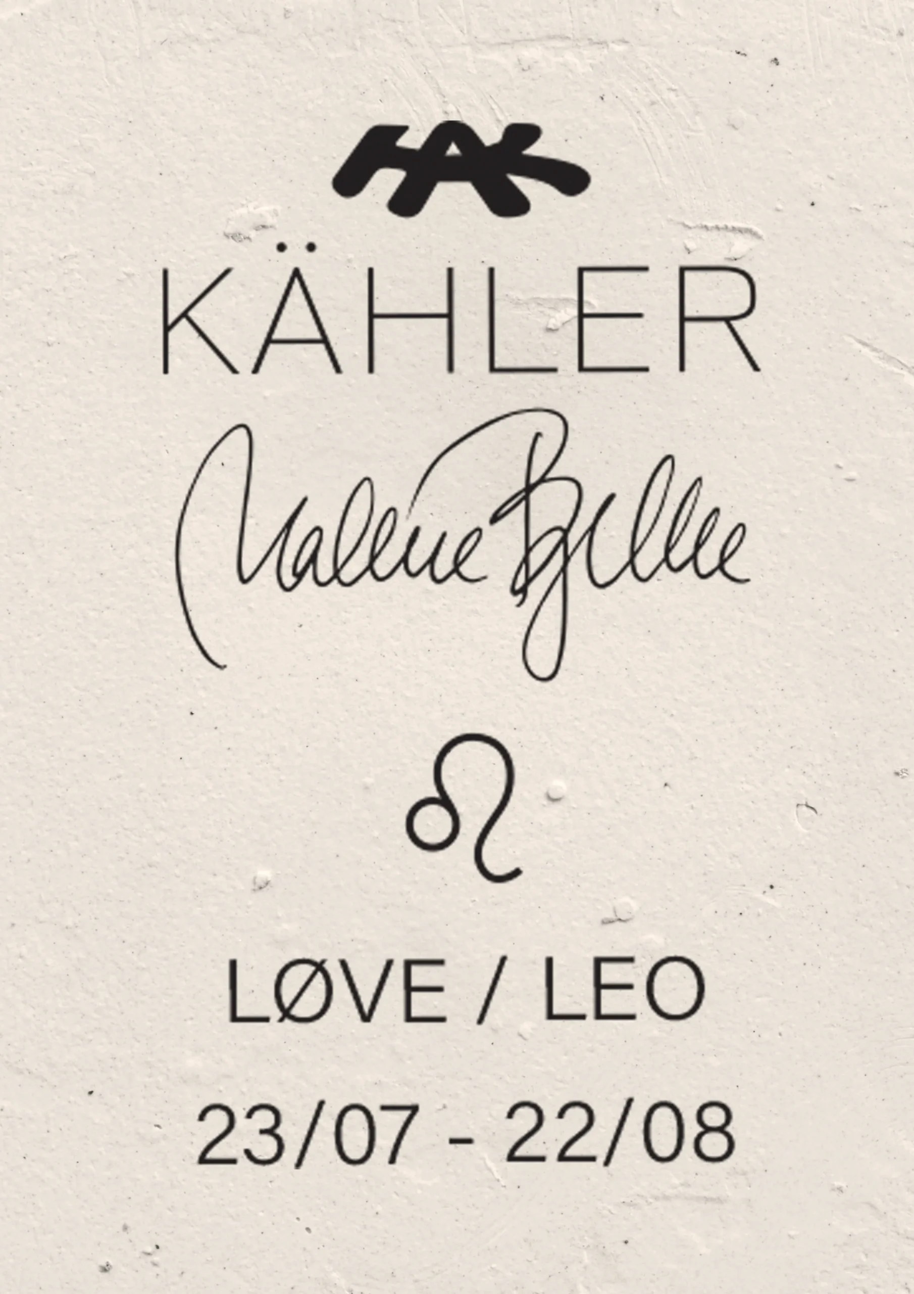 Med de nye Astro-skulpturer fra Kähler har den danske billedhugger Malene Bjelke været inspireret af Kählers mangeårige figurhistorie og skabt 12 forskellige stjernetegnsskulpturer, der på smukkeste vis fører designarven fra Kählers historiske keramikværksted op i vores moderne tid med spirituelt fokus. Alle stjernetegnsfigurer er fremstillet i hvid uglaceret stentøj og står i et skitseret look. Det rå udtryk er medvirkende til at skabe dynamik i figurerne som naturalistiske enkeltheder, så de fremstår som skulpturer, der kan opleves fra alle sider. Hver enkelt Astro-skulptur er skabt med et beskrivende ord ud fra de værdier, der knytter sig til hvert af de 12 forskellige stjernetegn, og energien fra stjernetegnenes særlige egenskaber er blevet omsat i formgivningen af figurerne. For Astro Løve-skulpturen er det ordet Styrke, der kommer til udtryk i figurens positur og er med til at beskrive dette stjernetegns unikke karaktertræk. Vi anbefaler at sætte filtpuder under dine produkter for at undgå ridser. Især hvis de stilles på en sart overflade.