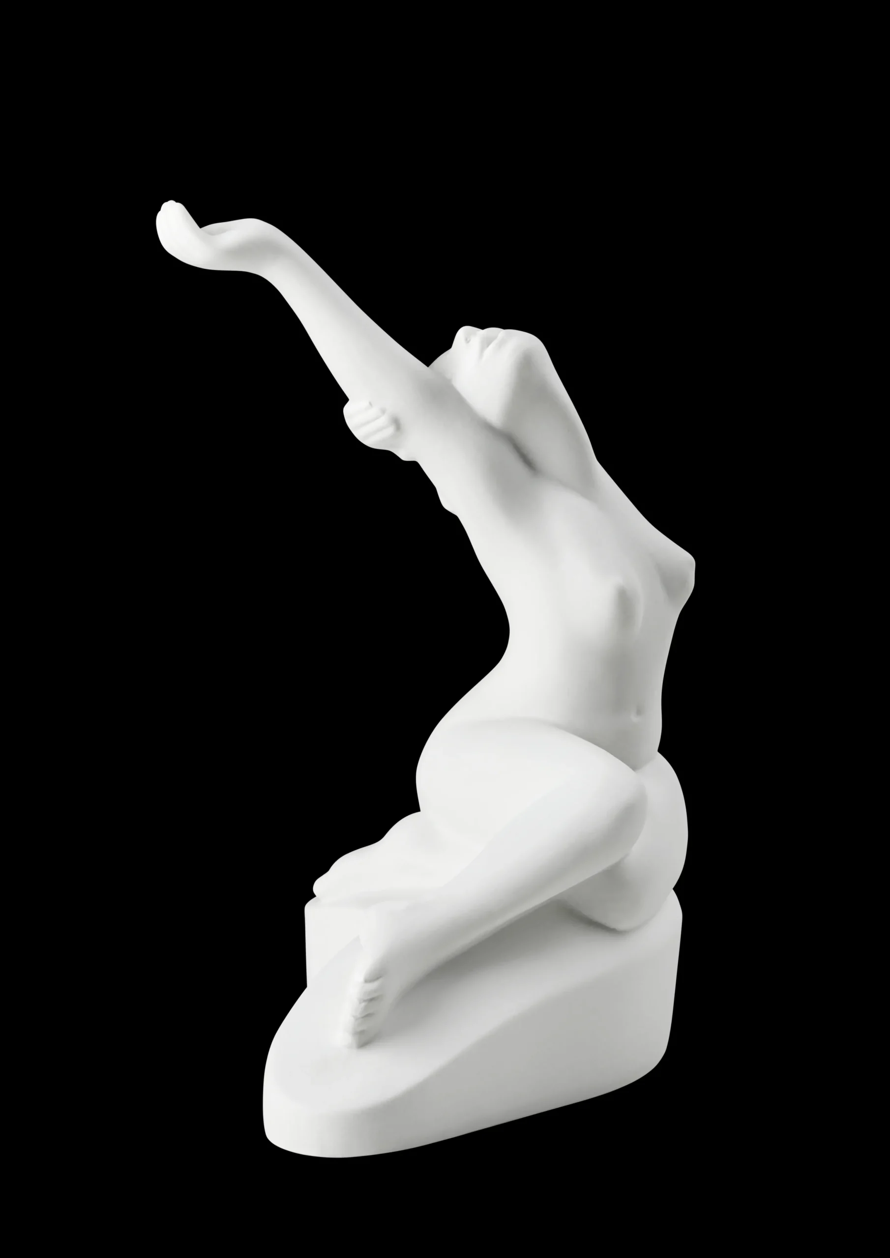 Kähler er historisk set meget kendt og anerkendt for sine keramiske figurer. Og den tradition tager kunstner Louise Hindsgavl med sig ind i arbejdet med Moments of Being-serien, hvor hun både trækker tråde tilbage til den kunstneriske historie, som Kähler er en del af, og ind i den tid, vi befinder os i lige nu. Med figuren Heavenly Grounded manifesterer Louise Hindsgavl den følelse og det moment, hvor en kvinde er præcis det sted i livet, hun gerne vil være. Den 22,5 cm høje porcelænsfigur viser en kvinde, der rækker en arm i vejret, mens hun sidder – næsten ligger – henslængt. Alslappet. I balance. Forankret. Heavenly Grounded er en hyldest til netop hende, der har fundet ro og fred med en situation. Hendes liv eller hendes forandringer. Heavenly Grounded symboliserer selvsikkerhed og power – at stå fast, at være jordnær, at være lige præcis det sted, der er rigtigt for én selv som kvinde. Moments of Being er en serie af tre kvindeskulpturer, der ud over Heavenly Grounded består af Beginnings og Silent Change. Alle figurer er formet i hvidglaseret, mat fajance i et enkelt og klassisk design, hvor de afrundede former er definerende for hver enkelt kvindeskikkelse.