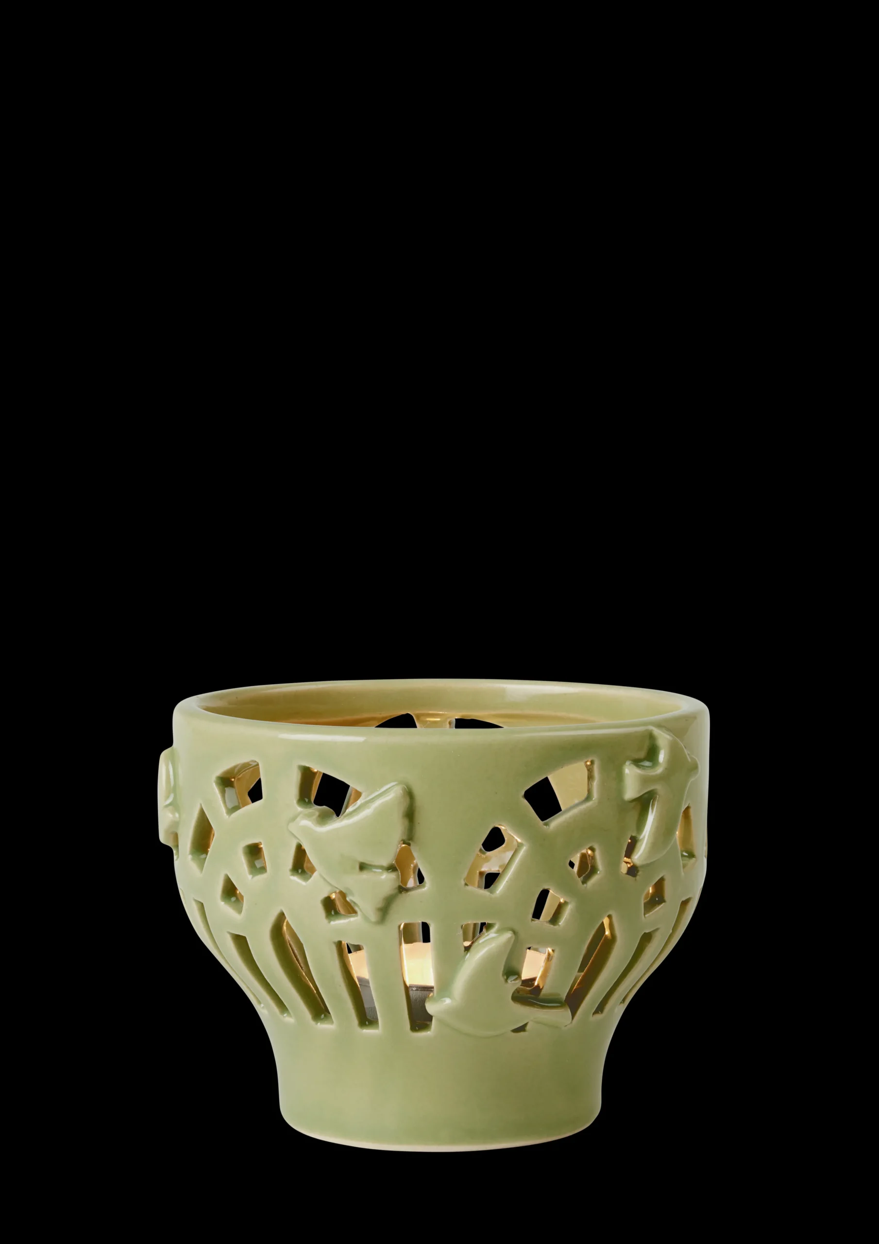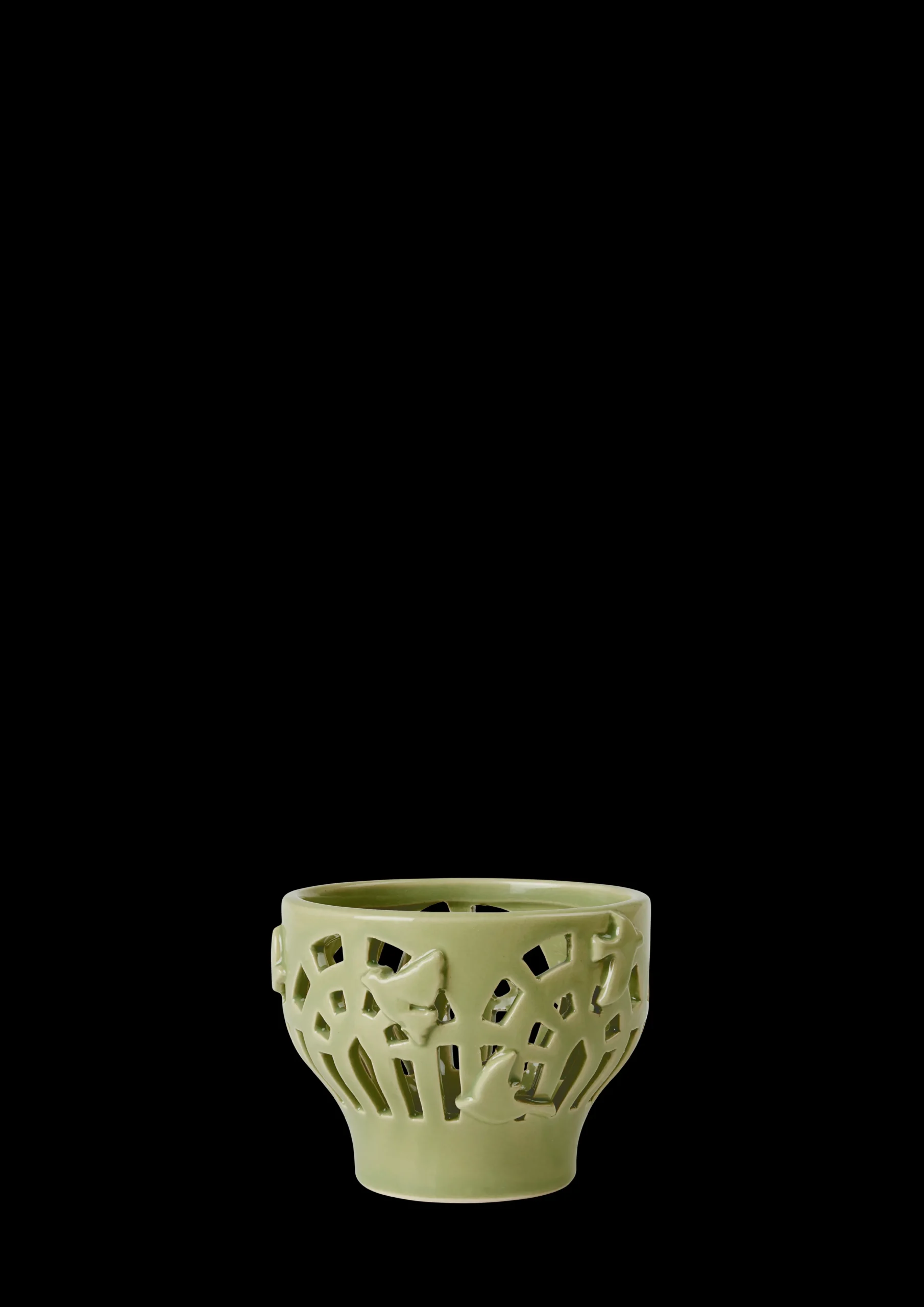 Den fine Orangery-fyrfadsstage på 7 cm er fremstillet i keramik og glaseret i den elegante og naturlige mellemgrønne farve Spring Leaf. Smallest ved bunden bevæger formen sig op og ud som en lille kop, så der opstår et naturligt sted at placere fyrfadslyset. Stagen er inspireret af orangeriets lys, arkitektur, stemning og stoflighed, og de mange små ruder, der udgør et orangeri, er gengivet som håndudskårne dekorationer i klassiske former. Herfra kan lyset fra fyrfadslyset strømme ud og skabe en hyggelig og varm stemning. Hver eneste lille udskæring er lavet i hånden ligesom de stiliserede fugle i forskellige silhuetter, der pryder ydersiden. Smukt keramisk håndværk fra Kähler, når det er bedst.