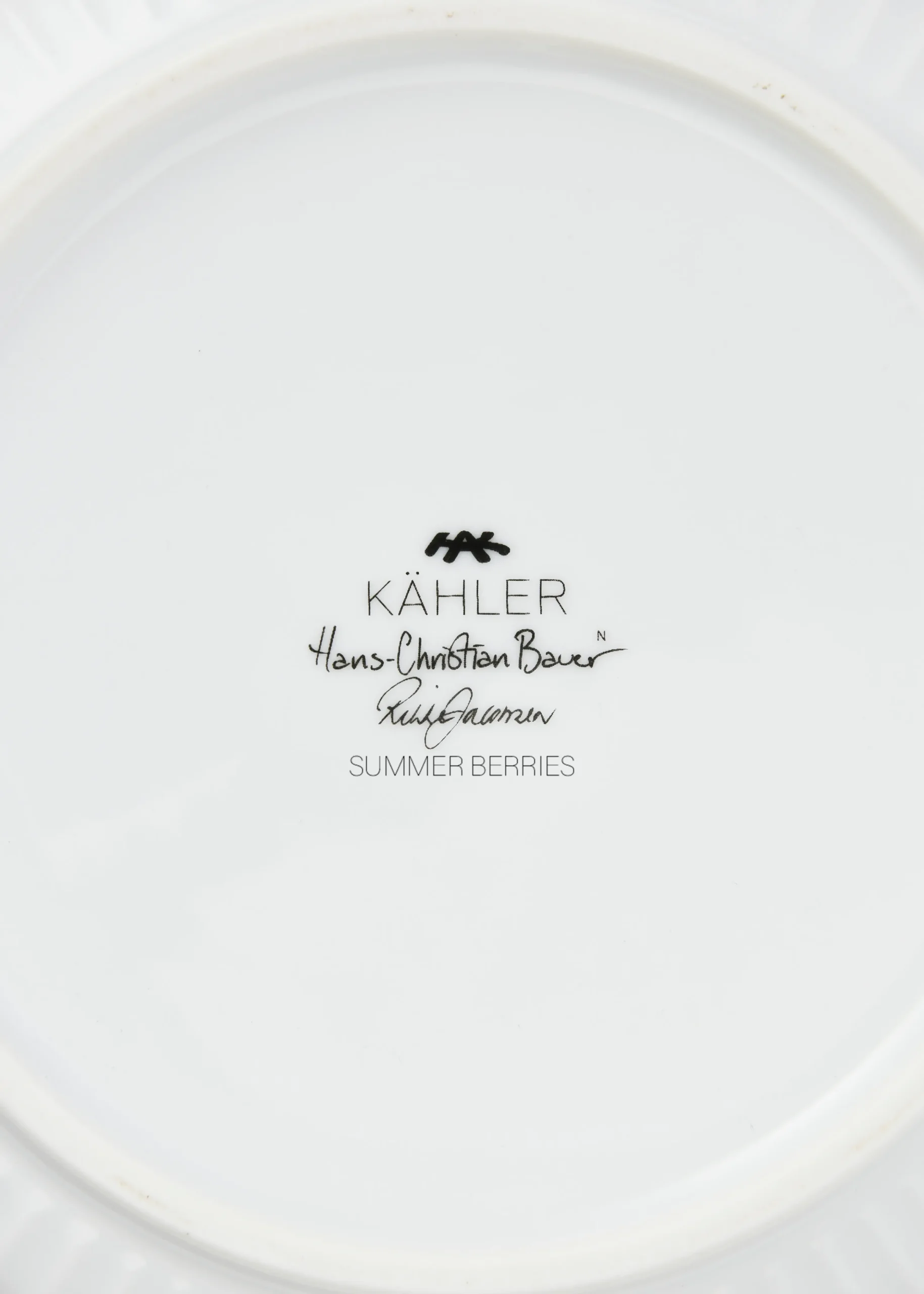 Blomstrende farver, former og følelsen af autentisk sommerstemning. Med Hammershøi Summer fra Kähler kan du næsten mærke solens stråler og den lune sommervind, når du dækker op til kaffe og lidt lækkert på terrassen, altanen eller i sommerhuset. Hammershøi Summer-serien er inspireret af den danske sommers eventyrlige former, farver og følelser, og Hammershøi Summer-skålen med sommerbær med en diameter på 21 cm er ligesom de andre dele i sommerbærtemaet flot udsmykket med blandt andet jordbær, blåbær og sommerfuglen dagpåfugleøje, der legende og poetisk flyver gennem sommeren. Sommerbærtemaet er malet på samme måde som de andre temaer i Hammershøi Summer-serien, hvor planter og blomster nærmest bevæger sig uvilkårligt hen over de klassiske riller på de hvide keramikdele. Det er som om de nærmest vokser op, ja, næsten danser hen over porcelænet med deres forskellige asymmetriske retninger. Skålen vil være et smukt supplement til de øvrige dele i serien – også på tværs af temaer – hvor den vil fuldende en glad og hyggelig sommerstemning på bordet, samtidig med at du nyder den autentiske nostalgi i Kählers håndlavede designtraditioner. Det er nemt at forestille sig Hammershøi Summer-skålen som den perfekte base for en sprød salat fra haven, og både størrelsen og selvfølgelig motivdesignet gør den helt oplagt til servering af et par bakker nyplukkede jordbær fra vejen eller det nærliggende gårdudsalg. Motiverne er skabt af kunstner Rikke Jacobsen på Hammershøi-stellets eksisterende dele designet af Hans-Christian Bauer. Med sine smukke akvareller skaber hun detaljerige motiver, hvor flora og fauna spiller en gennemgående rolle og indfanger stemningen i naturen og årstiderne omkring os.