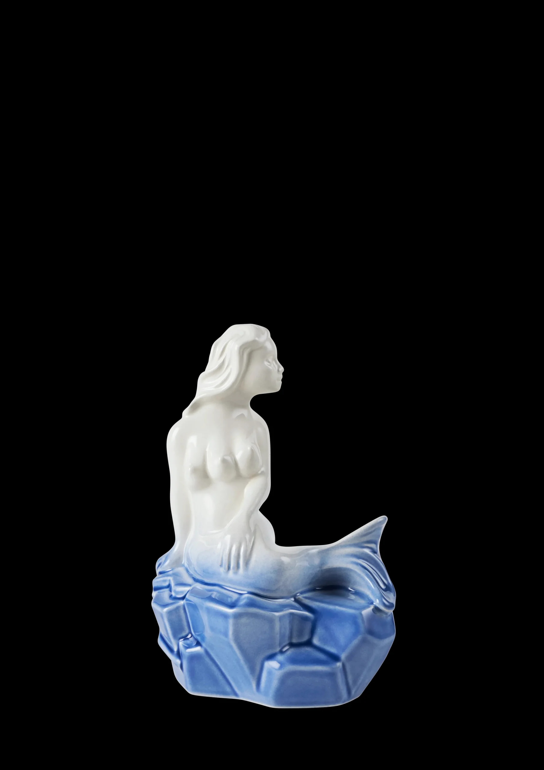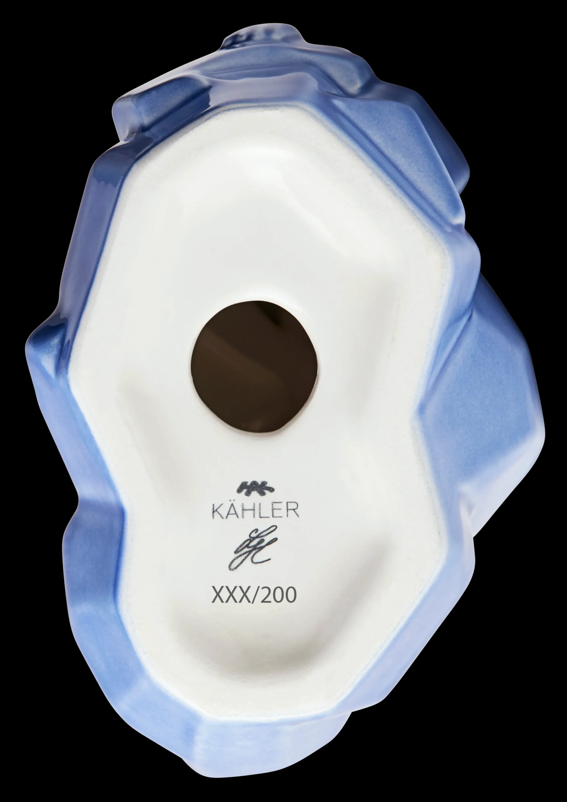 Improved and impatient. Forbedret og utålmodig. Med udgangspunkt i H.C. Andersens verdensberømte eventyr om Den Lille Havfrue har kunstner Louise Hindsgavl med sin vanlige pirrende og provokerende keramiske kunst endnu engang i samarbejde med Kähler skabt en figurativ kickstarter til livets ofte lidt svære snakke. The Ambitious hedder hendes nye figurer i glaseret keramik. Her fortæller hun historien om en havfrue, der prøver nye veje for at gøre sine drømme til virkelighed. Som den foretagsomme og initiativrige unge kvinde hun er, har hun forsøgt sig med ben i stedet for hale. Og hun er klar til at tage et skridt videre. Måske skal der et ekstra bryst til for at charmere prinsen? Den utålmodighed, som havfruen efterhånden må føle i sine bestræbelser på at få prinsen i nettet, har Louise Hindsgavl i sin fænomenale formgivning subtilt udtrykt med den svirpende bevægelse i halen. The Ambitious-figurerne er 20 cm høje og fås i grå, lilla og denne blå variant. Alle emmer af Kählers autenticitet og håndlavede designtraditioner, samtidig med at de med deres udfordrende udtryksform lægger op til samtalen om det, Louise Hindsgavl kalder ’de ting, vi skylder hinanden at tale om, men ofte ikke selv tør tage hul på’. Med The Ambitious tager hun os med ind i en utålmodighedens og mulighedernes verden og stiller sit figurative arbejde til skue – og debat. Hun påtager sig som kunstner ansvaret, påtager sig risikoen ved at starte den svære samtale. For ud over at skabe moderne kunst og design til boligen, så vil Louise Hindsgavl med The Ambitious-figurerne gerne kradse i overfladen på vores kultur og skabe platformen for en diskussion. For eksempel om hvad der ligger i vores stræbsomhed, og hvor langt vi vil gå for at indfri vores ambitioner. The Ambitious bliver kun solgt på Holmegaard værket og på Rosendahl.com. Der bliver kun produceret 200 stk. af hver farve, og de er alle nummererede. Vi kan ikke oplyse om hvilket nummer din figur har/får.