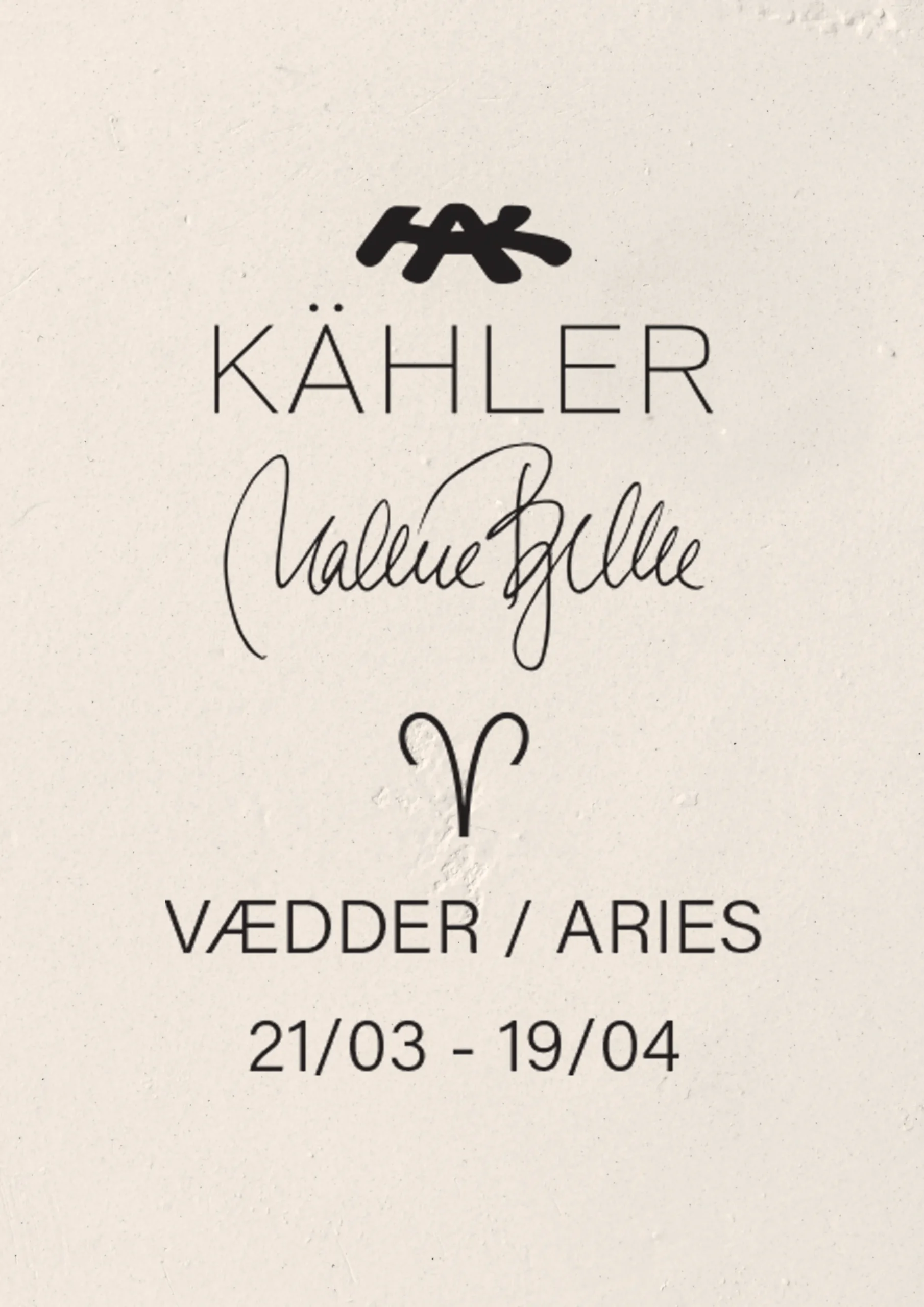 Med de nye Astro-skulpturer fra Kähler har den danske billedhugger Malene Bjelke været inspireret af Kählers mangeårige figurhistorie og skabt 12 forskellige stjernetegnsskulpturer, der på smukkeste vis fører designarven fra Kählers historiske keramikværksted op i vores moderne tid med spirituelt fokus. Alle stjernetegnsfigurer er fremstillet i hvid uglaceret stentøj og står i et skitseret look. Det rå udtryk er medvirkende til at skabe dynamik i figurerne som naturalistiske enkeltheder, så de fremstår som skulpturer, der kan opleves fra alle sider. Hver enkelt Astro-skulptur er skabt med et beskrivende ord ud fra de værdier, der knytter sig til hvert af de 12 forskellige stjernetegn, og energien fra stjernetegnenes særlige egenskaber er blevet omsat i formgivningen af figurerne. For Astro Vædder-skulpturen er det ordet Fokus, der kommer til udtryk i figurens positur og er med til at beskrive dette stjernetegns unikke karaktertræk. Vi anbefaler at sætte filtpuder under dine produkter for at undgå ridser. Især hvis de stilles på en sart overflade.