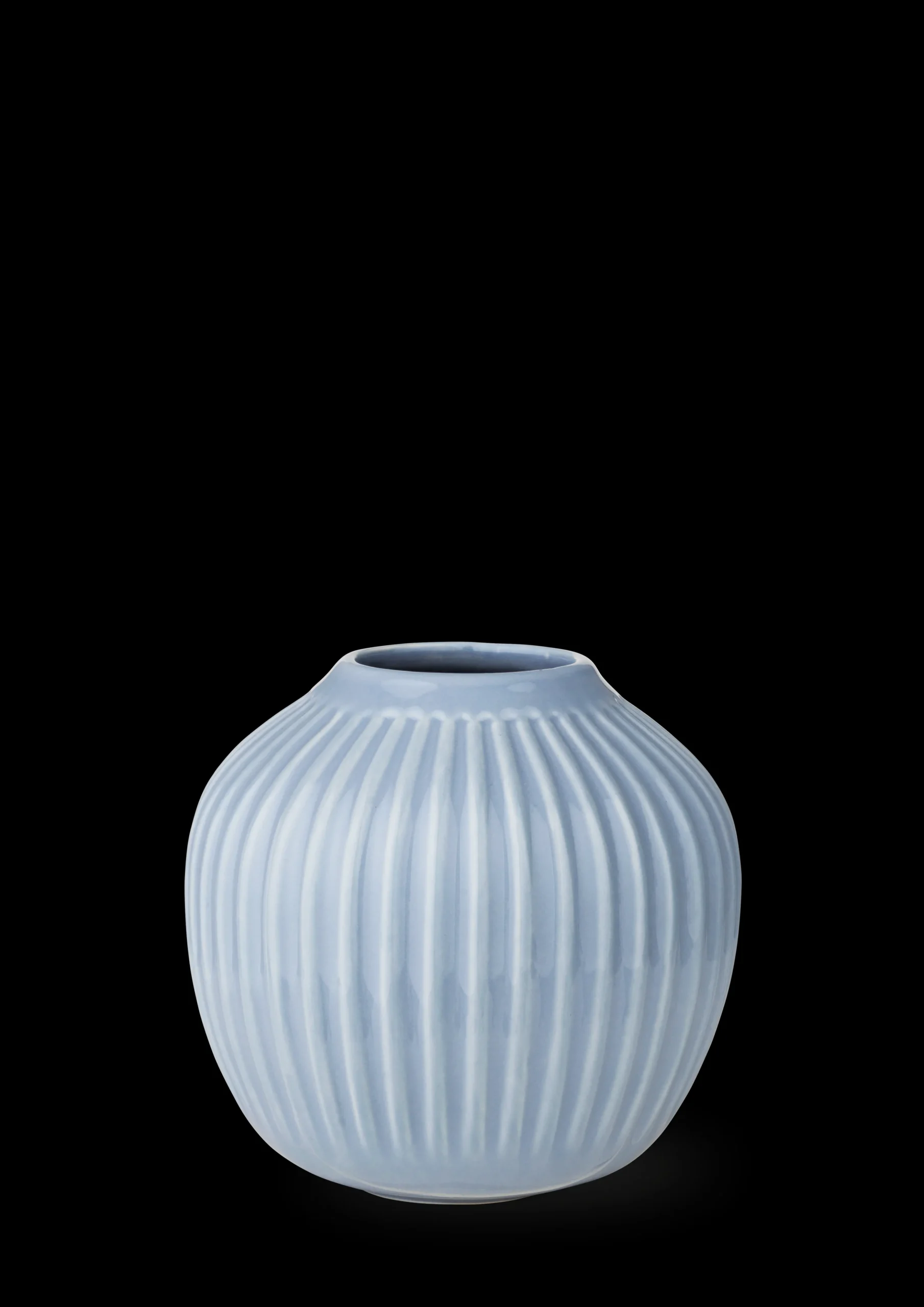 Den elegante lyseblå vase i Hammershøi serien fra Kähler er smuk til blomster eller dekorative grene, der kan bære årstidens pynt. nStil vasen som et flot midtpunkt på borddækningen, eller skab en flot helhed med resten af Kählers Hammershøi serie, hvor der er forskellige farver, former og materialer at vælge imellem.nHammershøi-serien fra Kähler er udformet med respekt og øje for Kählers designhistorie. De nutidige Hammershøi-klassikere er inspireret af kunster Svend Hammershøis originale værker, hvor designer Hans-Christian Bauer lader de ikoniske riller stå i kontrast til et blødt formsprog.