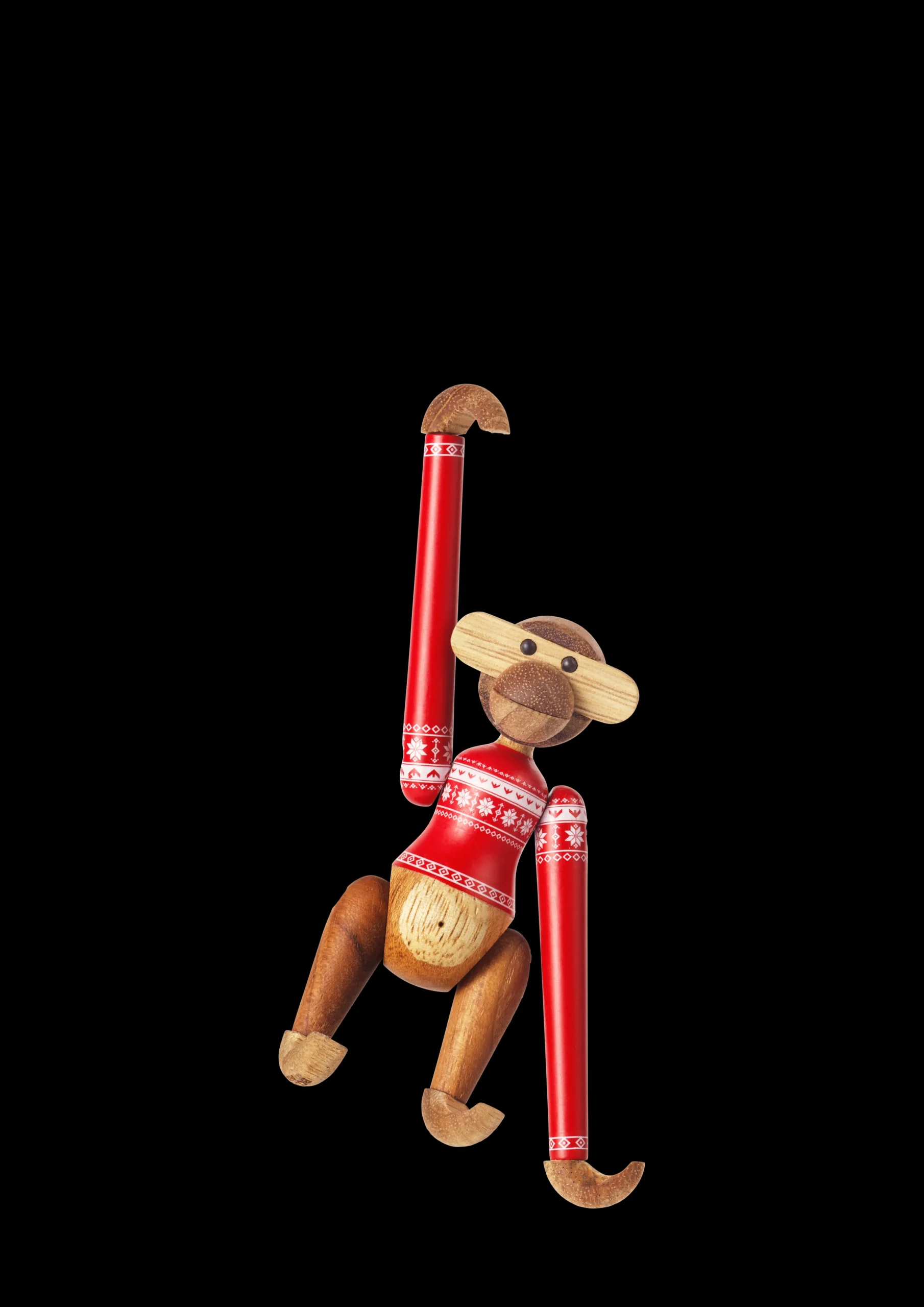 Original julemagi i et flot og moderne snit. Med den altid smilende Kay Bojesen Abe i en unik juleversion iført en klassisk rød julesweater væves historien om Kay Bojesens alletiders verdensberømte designikon og vores hyggelige juletid endnu tættere sammen. Kay Bojesen Abe Julesweater 2024 er fremstillet i FSC®-certificeret teak og kommer i både denne miniversion på 9,5 cm og klassiske lille størrelse på 18,5 cm i højden. Begge prydes med et klassisk julemønster med de fineste julestjerner og snefnug i hvid på bryst, mave og skuldre – og med en sød lille detalje med et smalt bånd med et julerudemønster ved hver ærmekant. Trøjens røde bundfarve er malet med stor omhyggelighed, mens mønsteret i hvid er påført med print med største præcision ned til de mindste detaljer, så julesweateren får det autentiske og gennemarbejdede udtryk fuld af den sjæl og humor, der altid har været udgangspunktet for Kay Bojesens unikke håndværk og historiefortælling. Brugen af de klassiske julefarver og et ikonisk julemønster gør Aben selvskreven som et levende og legende element i en moderne indretning i julen, hvor den vil skabe smil og stil med sin finurlige fremtoning og sit farverige udseende – uanset hvor den flytter ind. Kay Bojesen Abe Julesweater 2024 er nostalgisk og nyskabende dansk design, der ydmygt og med et glimt i øjet bygger videre på Kay Bojesens ikoniske designarv og fuld af julesjov, stjerner og snefnug tilføjer et nyt kærligt kapitel til hans originale fortællinger i træ.