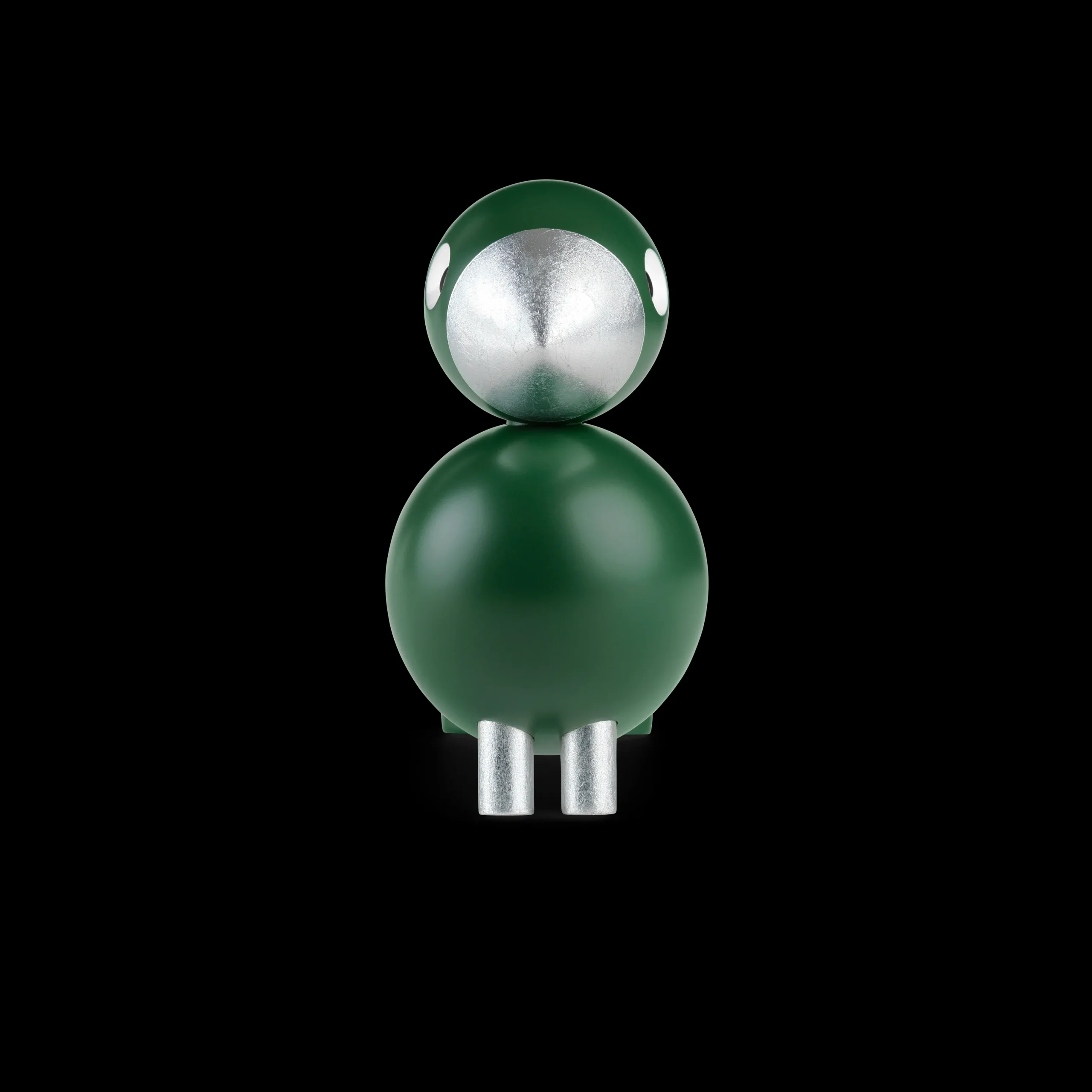 Skøn sangfugl i mørkegrøn med næb og ben beklædt i bladsølv. Sangfuglen er fra Kay Bojesen og er blevet døbt ”Sangfuglen Georg” som en hyldest til Kay Bojesens læretid som sølvsmed hos Georg Jensen, hvor han blev udlært i 1910. Den skønne grønne nuance og de fine detaljer i sølv er inspireret af gamle sølvsmykker fra denne tid og passer perfekt sammen med de andre sangfugle fra Kay Bojesen.