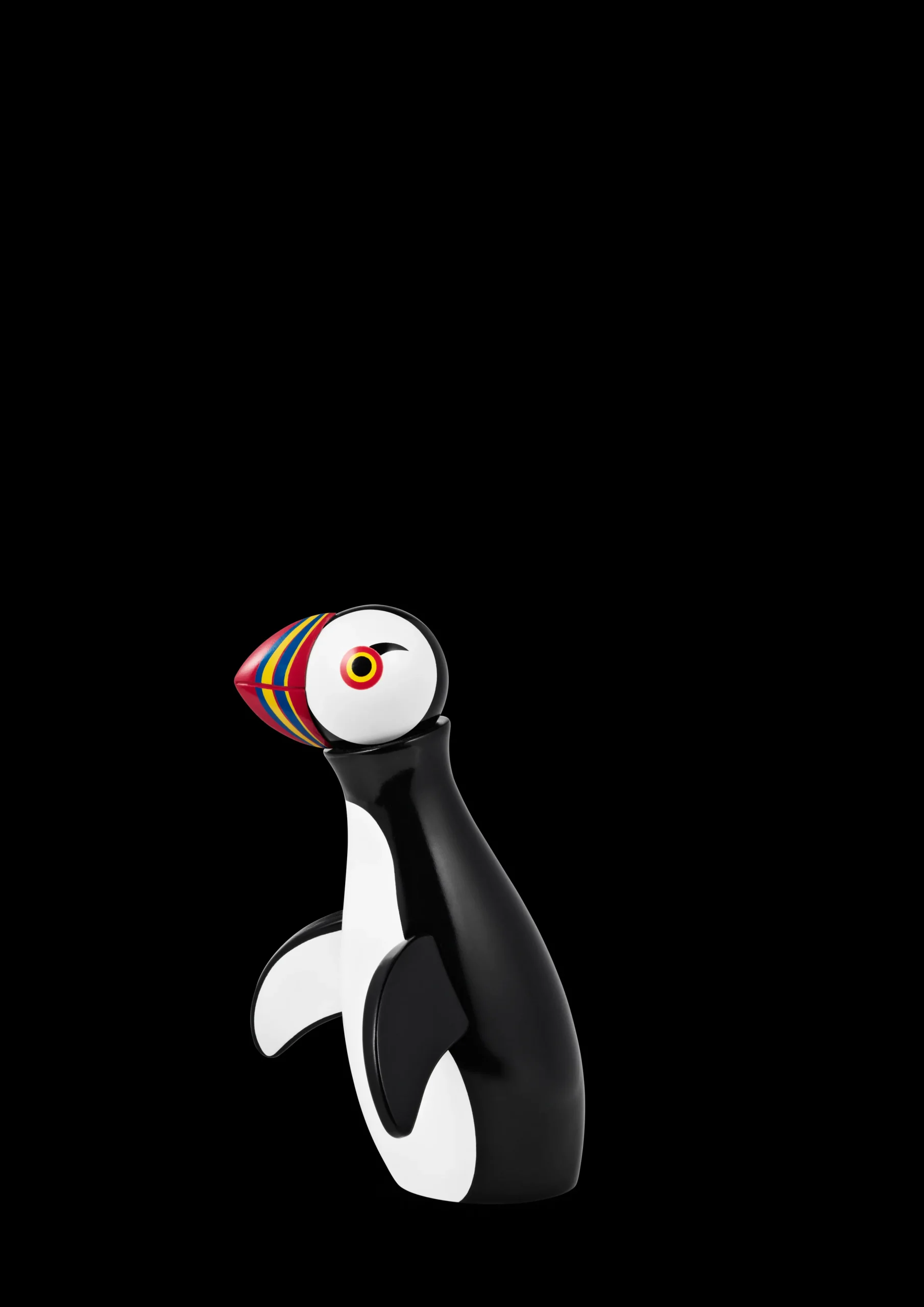 Smil om næbet i 70 år. Med sit farvestrålende næb og venlige udtryk er Søpapegøjen en fugl, man elsker ved første øjekast. Den er næsten for sød til at være sand, og det er nemt at forstå, hvorfor Kay Bojesen lod sig inspirere af den charmerende fugl fra det kolde nord, da han skabte sin kendte og elskede Søpapegøje tilbage i 1954. 70-året skal selvfølgelig markeres på behørig vis med en jubilæumsudgave, der kun produceres i 2024, og en ny ministørrelse, der er om muligt endnu mere charmerende. Den lille Søpapegøje måler 13,5 cm og er fremstillet i FSC®-certificeret bøgetræ, der er bemalet med stor præcision og omhyggelighed, så kroppen, næbet og øjnene får det autentiske, fine og venlige udtryk, som Søpapegøjen er kendt for. Det var teatermaler Svend Rasmussen, der stod bag fuglens fine farver og vidunderlige næb, og hans naive og minimalistiske streg og farvebrug matcher Kay Bojesens legende og fantasifulde verden perfekt. Uanset størrelsen har Søpapegøjen en helt særlig appel til både børn og voksne og er en god gaveide til dåb, fødselsdag, studentergave, jubilæum eller bryllup. En klassiker, der flytter med gennem hele livet – lige fra børneværelset til at blive et elsket designikon i egen bolig.