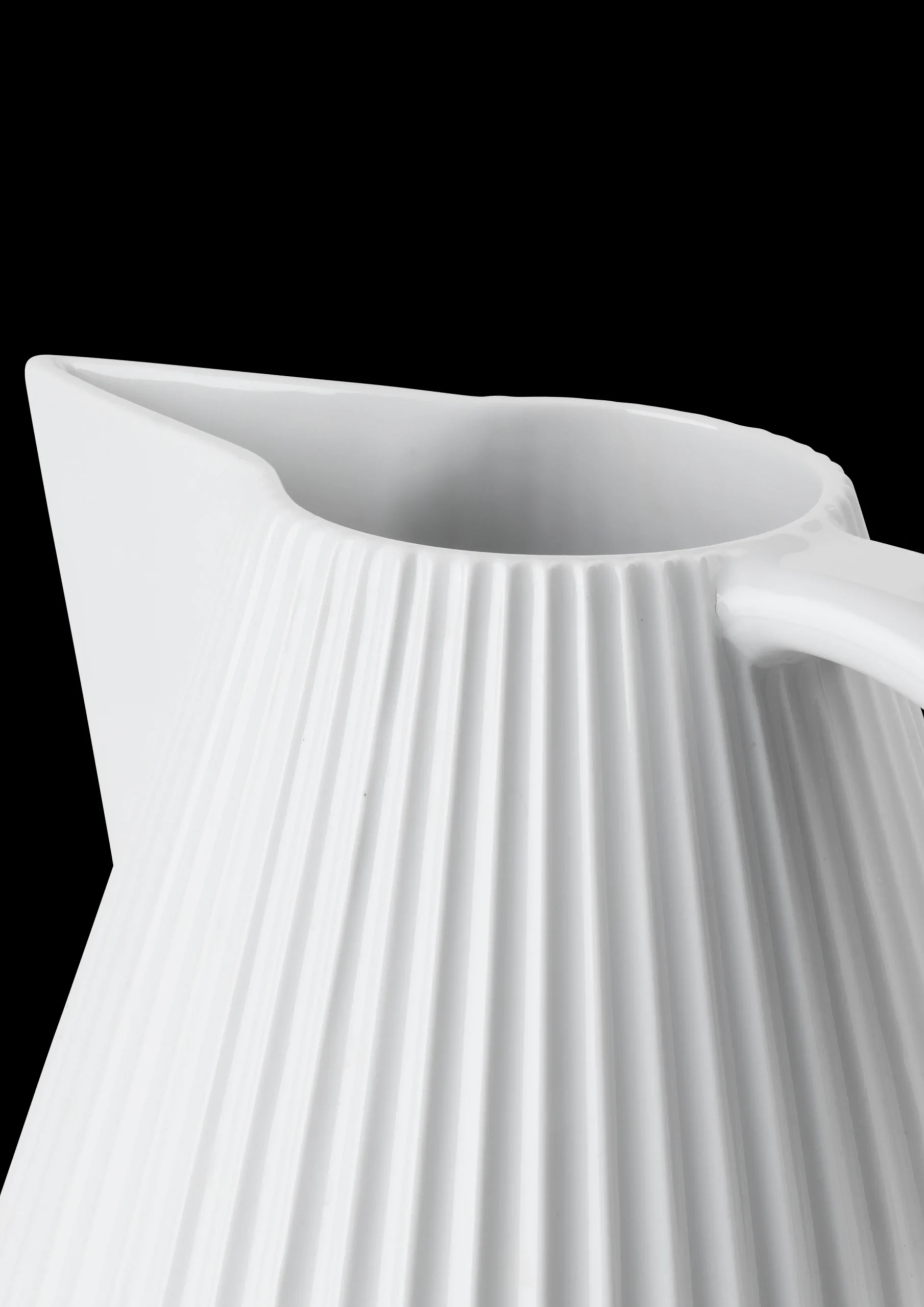 Den smukke og skulpturelle Tura kandevase i kridhvid porcelæn er designet af Philip Bro Ludvigsen og inspireret af kvindelige former. Tura kandevasen er udført med respekt for Lyngby Porcelæns klassiske riller, men er samtidig et moderne take på en smuk vase. 4 l.