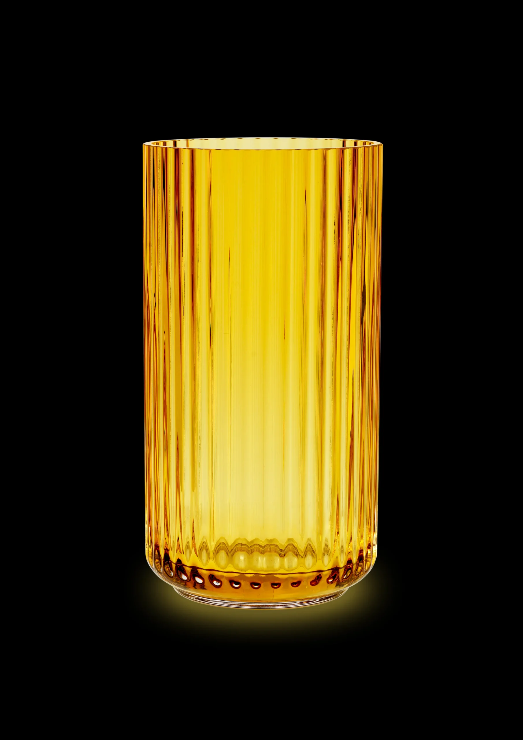 Den karakteristiske Lyngbyvase i mundblæst glas i den smukke varme amber farve, er en sand designklassiker. Med sit enkle og minimalistiske udtryk er vasen perfekt til at fylde med overdådige, farvestrålende blomster og grene. Glasvasen på 15,5 cm sig også smukt ud på fx spisebordet eller sofabordet. Lyngbyvasen er i dag et af de mest ikoniske produkter fra Lyngby Porcelæn. Den cylindriske hvide vase blev designet ud fra 1930’ernes ideologi om at forene form og funktion. Overflødig ornamentering skulle ikke længere være en del af designet – vasen skulle stå i sin rene form og være brugbar. Selvom de fleste primært forbinder Lyngby Porcelæn med porcelæn alene, så har glaskunst og glas altid været en vigtig del af vores DNA. Porcelænsfabrikken Danmark – Lyngby Porcelæn blev i sin tid stiftet af glasgrossister. Derfor finder du også Lyngby Fyrfadsstagen i vores sortiment. Lad Lyngbyvasen med de ikoniske riller få en plads i dit hjem.