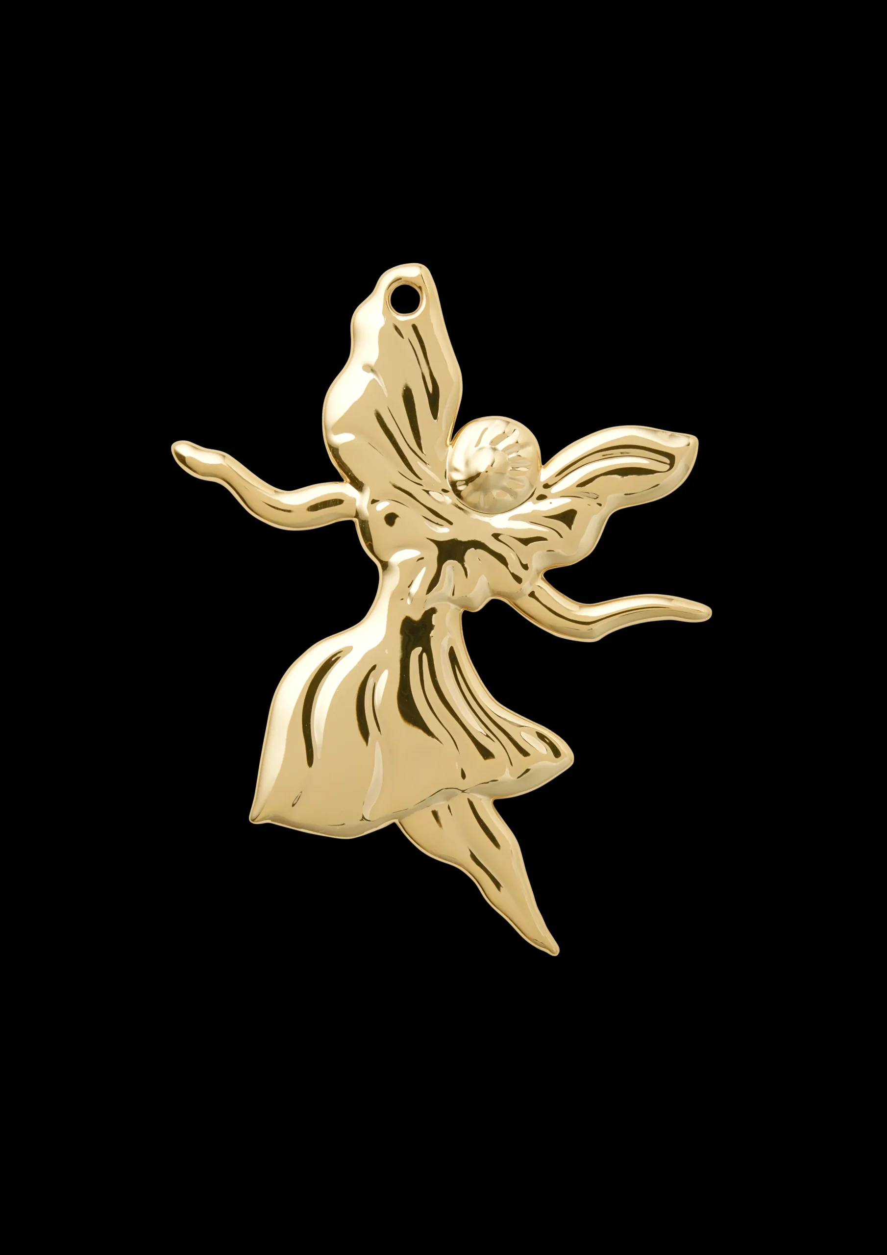 Klassisk julepynt med kunstnerisk kant. Rosendahls Karen Blixens Jul er for mange indbegrebet af den hyggelige og traditionelle jul – fuld af historie og julesymbolik, der får juleglæden til at holde helt indtil juleaften. Ole Kortzau lavede sin første Karen Blixen-julepynt tilbage i 2007. Og hvert år kommer der nye ophæng til i den særlige håndlavede kvalitet skabt med omhyggelighed og øje for detaljen i en sådan grad, at hvert enkelt ophæng fremstår som et lille kunstværk i sig selv, belagt med ægte sølv og guld. 2024-kollektionen indeholder blandt andet denne forgyldte ’dansende engel’, der yndigt og svævende tilføjer den magi til december, der gør juletiden til noget helt særligt. Den dansende engel rummer den yndige lethed, der ofte forbindes med Karen Blixens historiefortælling, og man kan næsten høre den julemusik, englen danser til. Ligesom de andre små ophæng i serien er det ca. 7 cm i højden og fungerer perfekt som vinduespynt. Motiverne i Karen Blixens Jul er ofte en kærlighedserklæring til børnenes perspektiv på julen. Men selvom Ole Kortzaus julehistorier tager udgangspunkt i virkeligheden, så er de ikke virkeligheden. Derfor er der også altid lige puffet lidt til motiverne. De er altid lidt skæve, lidt underfundige. Ole Kortzau vil have os til stoppe op, tage en pause – og opdage alle de klassiske karakterer på en anden måde.nDette juleophæng leveres med en fin rød snor.