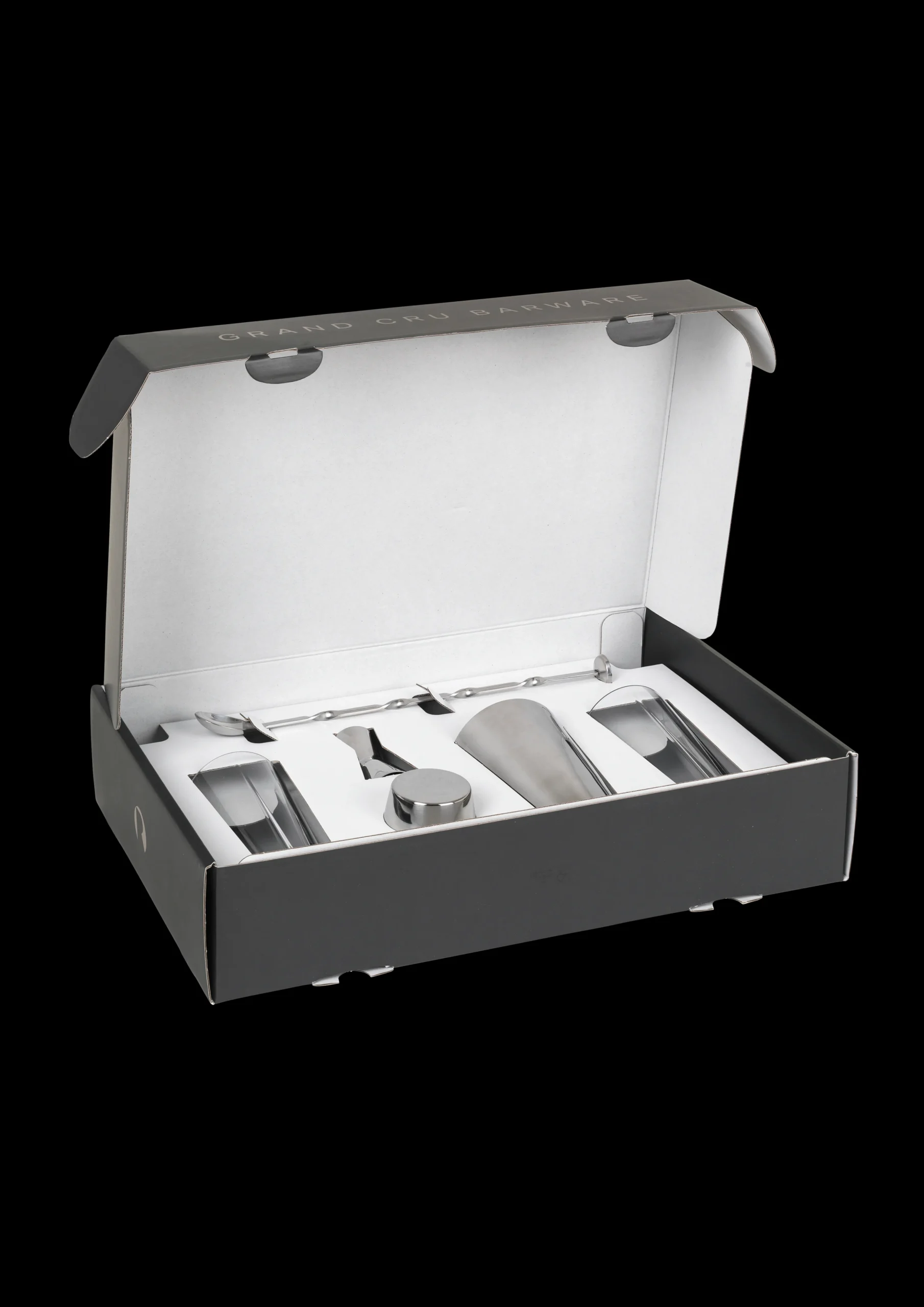 Cocktails og longdrinks er populære som aldrig før – og med bar-serien fra Grand Cru er du sikker på at have udstyret i orden. Den stilrene shaker i rustfrit stål er en helt uundværlig del, som kombineret med barskeen og målebægret, der kan afmåle både 2 og 4 cl – gør det til en fornøjelse at mikse drinks både før og efter maden. Server i de klassiske og smukke Grand Cru longdrink glas. Gaveæsken har en samlet værdi af: 789,85 kr.