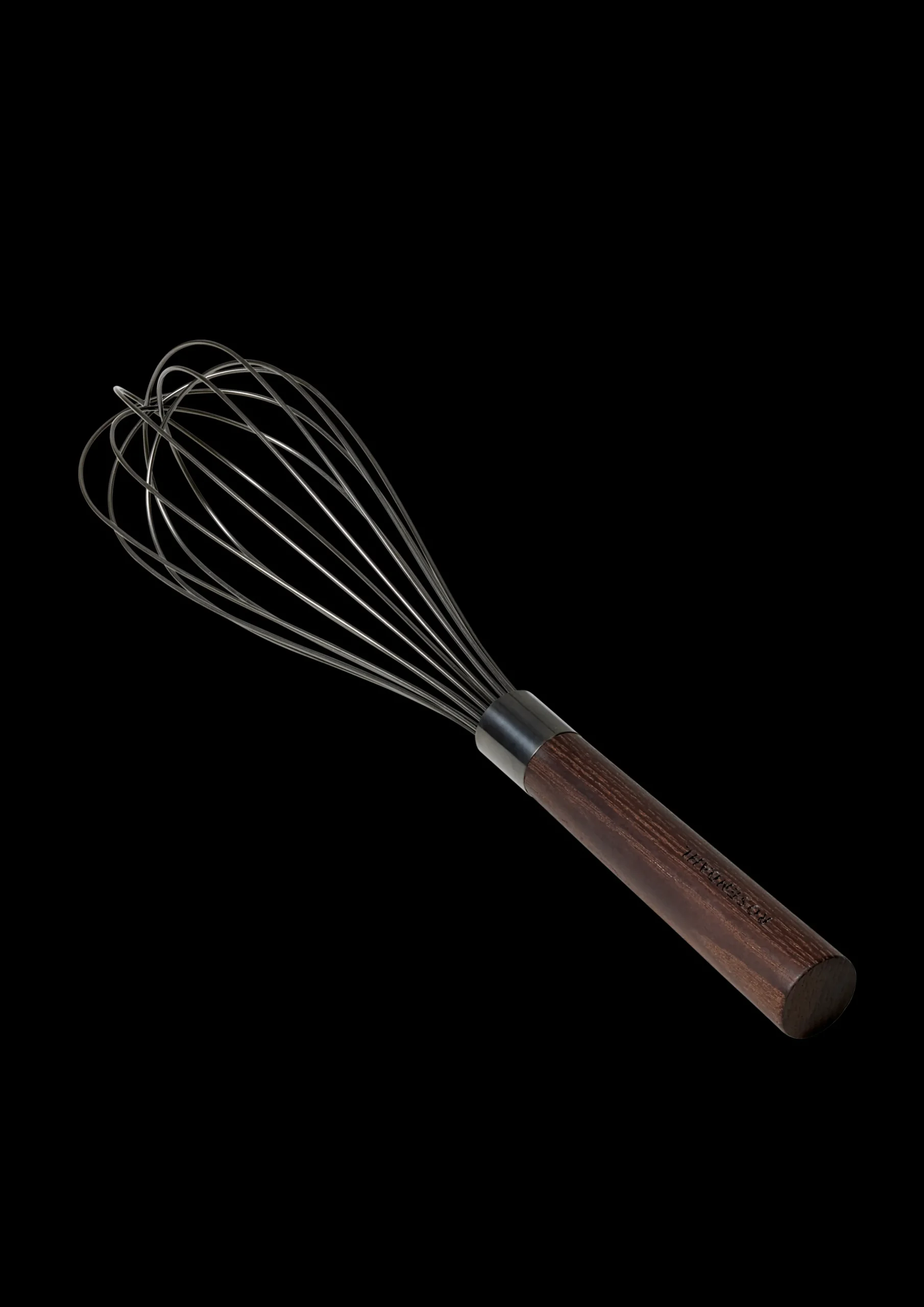 Piskeriset fra RÅ er fremstillet med et solidt greb i varmebehandlet asketræ og udstyret med hele syv loops i rustfrit stål med en holdbar overfladebelægning i farven gunmetal. Køkkenredskaberne i RÅ-serien er skabt i samarbejde med kokken Jesper Vollmer, der på baggrund af mange års erfaring i kokkefaget med braisering, tournering og tilsmagning har designet en række produkter med fokus på det gode greb og den gode brugsoplevelse med perfekt afstemt tyngde og balance til dit bord og dit køkken. RÅ-kollektionen, der er kendetegnet ved de bedste redskaber i et enkelt og nordisk formsprog, udvides nu med nye kvalitetsprodukter til køkkenet.